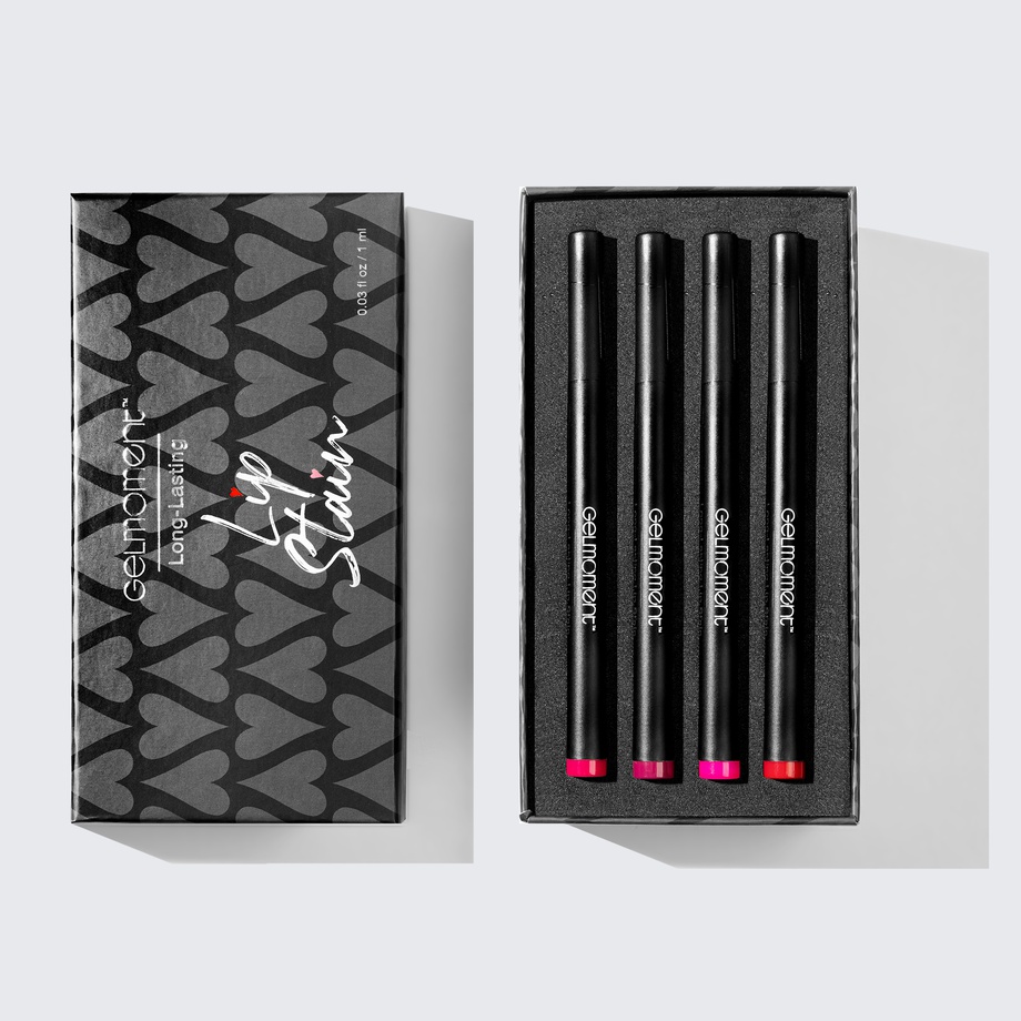GelMoment Lip Stains provide up to 12 hours of beautiful lip colour and definition! The unique fine point tip makes it easy to apply with precision. Our state-of-the-art colour formula is water-resistant, smudge-proof, light in texture and long-lasting. Unlike traditional lipstick or gloss, the GelMoment Lip Stain penetrates the skin on your lips, allowing the colour to look and feel naturally beautiful all day–or night–long, without any need for touchups.